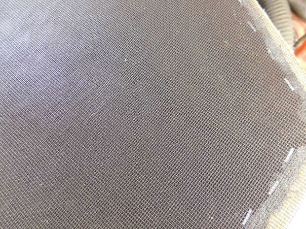 Una caja de tejido va encima de las cajas de colmena, debajo de la azotea. Proporciona ventilación adicional, pero su principal propósito es que absorben la humedad creada a partir de las abejas, como se llena de virutas de cedro. La mayoría Warre colmenas usan lona ya que es rígido, barato y duradero. Tuve algún medio a lino pesado que decidí usar en lugar de algodón.
