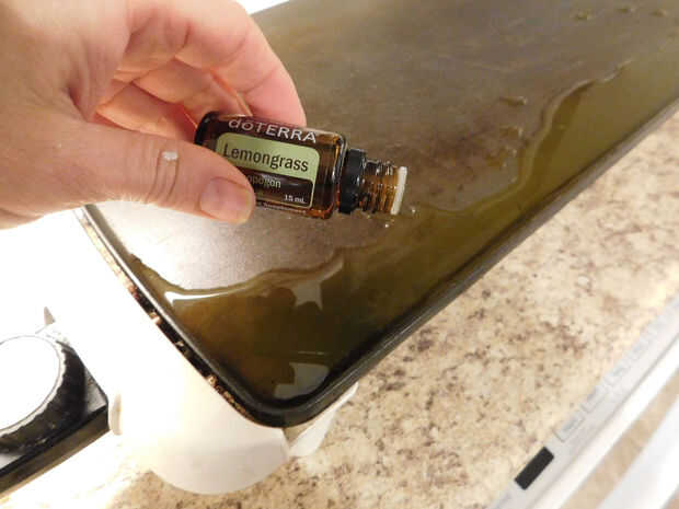 ~ Una vez que la cera se derritió cubierto unas gotas del aceite en él y revuelto con un pincho de bambú.