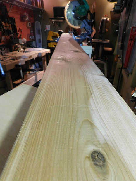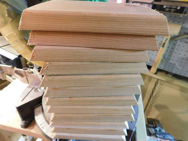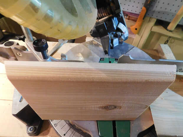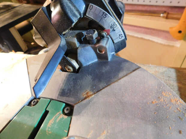 ~ I establece la hoja de sierra para 30 grados (30 más 30 es igual a 60 grados ángulos, de los cuales seis son 360), reprimieron y cortar un borde para el ángulo de inicio de mi primera pieza.