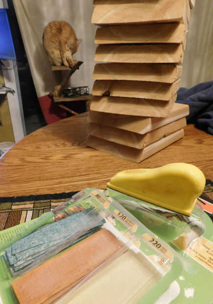 ~ I luego lijar cada pieza (mientras que el gato se limpia).