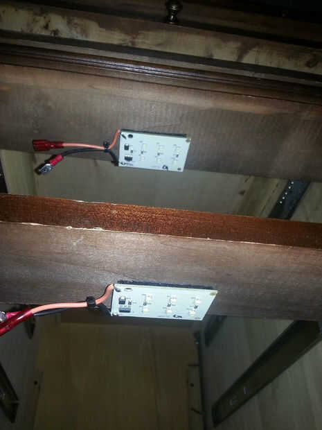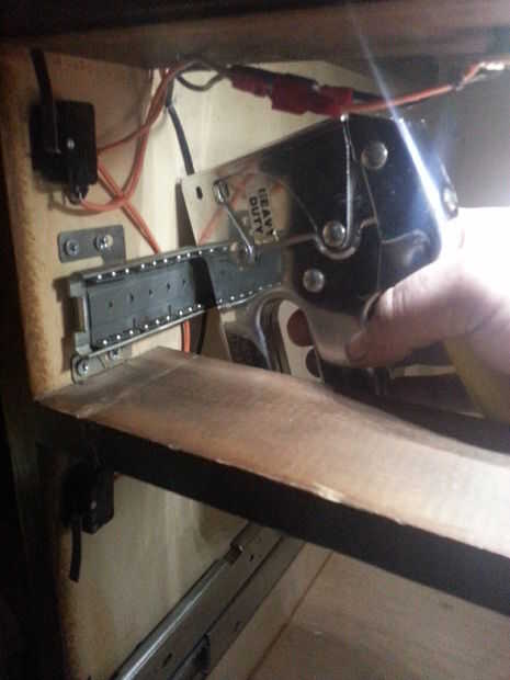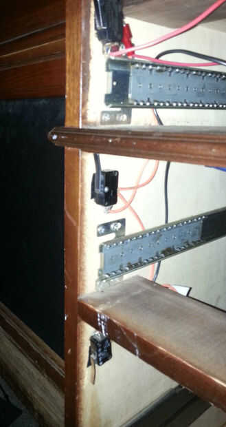 OK lo lo primero que debemos hacer en este paso es sacar todos los cajones del escritorio. Ahora toma algunas pequeñas tiras de Velcro y ponerlos en el escritorio cerca de donde el borde del cajón sería cerrado. Ahora añadir Velcro a los interruptores micro y colocarlos en el escritorio. La razón para usar el Velcro es para que pueda ajustar que los interruptores Dile que encontrar ese lugar perfecto donde trabajan mejor con el cajón. Ahora agrega Velcro en la parte trasera de las luces y les donde yo quería que ser montado. Con la ubicación del conjunto interruptor y las luces ahora puede medir la luz de cable que necesita para ir de lo positivo de la luz con el interruptor. Después de cortar el alambre a la longitud sueldan a los micro interruptores. Yo les soldadas a la terminal (NC2) normalmente cerrado uno el interruptor también sería un buen momento para agregar los conectores al final de los cables. Con todos los cables de la soldadura al terminal del interruptor NC2 colocarlos en el escritorio. Ahora aquí se pone un poco más. Ahora tenemos que conectar todos los interruptores y poder plomo juntos. Vamos a usar el terminal común (C1) del interruptor de este tiempo. Fui al interruptor más lejos lejos y soldar un cable a él. Luego a medio cambiar. Tome el cable de la primera y tome un cable nuevo y soldarlos al conmutador central. Lo mismo para el interruptor pasado pero esta vez nos necesitamos llevar unos 4 pies de largo de alambre para la energía positiva en. Ahora para el plomo negativo. Aquí tenemos bastante mucho lo mismo pero en vez de conectar a un interruptor estamos enganchando al cable negativo del LED. También utilizaremos conectores de horquilla en vez de soldar ya que habían soldado lleva a los leds para el retiro. Ahora se hace el cableado necesita grapar los cables por fuera del camino. De esta manera los cajones no cogen en ellas al abrir o cerrar.