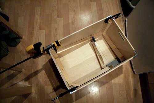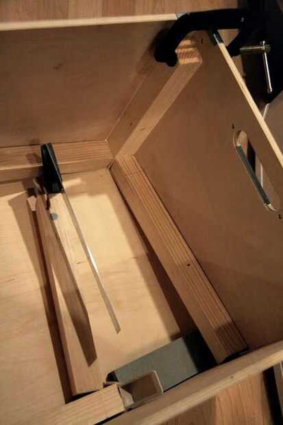 Como se puede ver - he utilizado un surtido entero de objetos de'lying-alrededor de la cuña y lograr un fuerte vínculo agradable entre el pegamento y la madera.