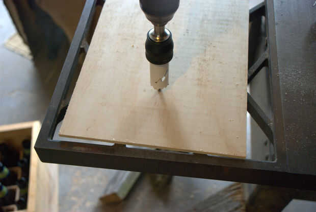 Tomar las piezas de cubierta y perfore un agujero del dedo en ellos.  Cualquier cosa más grande que debe hacer un orificio de 1".  Trate de alinear el agujero sobre los divisores, esto dejará una botella de cerveza de intentar caber a través del orificio debe conseguir anuló el cajón.