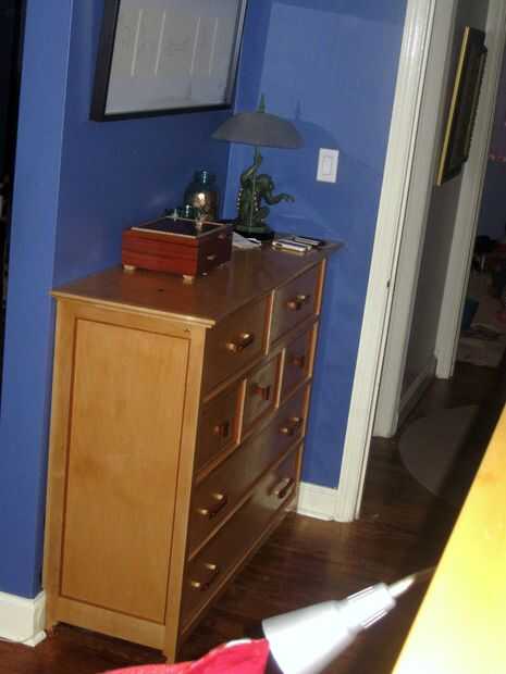 Hace 2 meses que terminé haciendo este aparador. Es maple con acentos de cerezo y acabado. Dejé a este rinconcito junto a la puerta en el dormitorio principal.