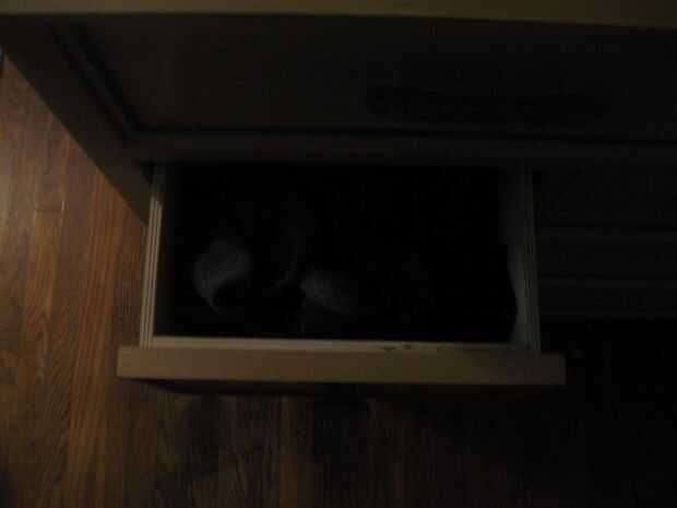 A la mañana siguiente abrí el cajón de mis calcetines negros en él y no podía ver nada
