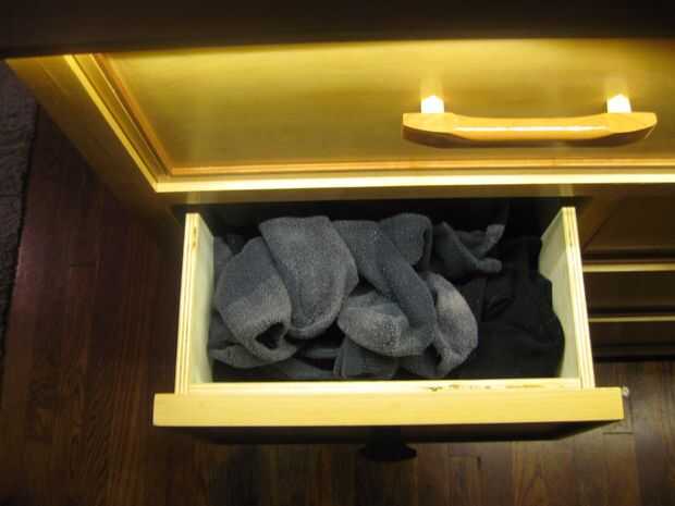este es un ejemplo de convertir un cajón en un aparador existente en una bahía de electonics. No tienes que elegir entre un aparador y un centro de entretenimiento!La cara del cajón se reutiliza para una puerta con una bisagra de la lista desplegab