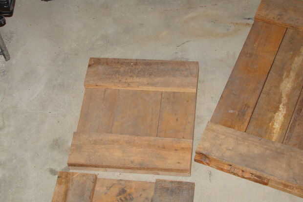 Alinear a tres de las 12" final tablas y pegamento y clavo dos placas de 11" a través de ellas, con cada extremo. Hacer lo mismo con las otras tablas de tres finales.