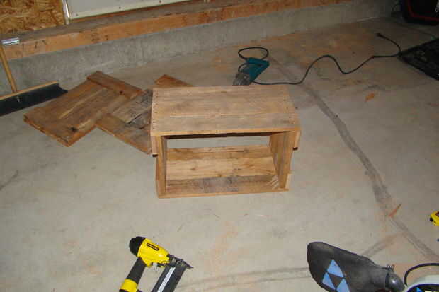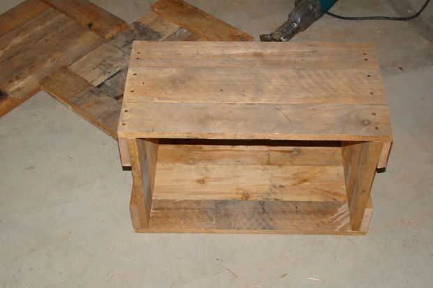 Pegamento y clavo los tableros laterales en los extremos del cajón y luego pegar y uñas la parte inferior en por lo que tiene un cajón. Sujete la parte superior con las bisagras.