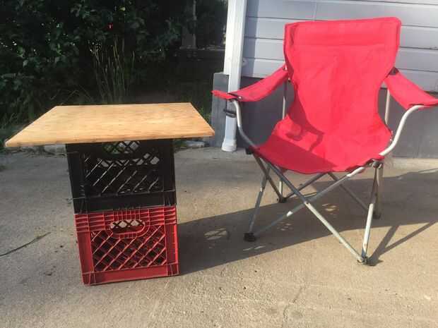Hago mucho de Jeep camping y al hacerlo, me parece que los cajones de leche hacen una gran manera de almacenar el equipo de camping en la zona de carga de mi Jeep. En una salida reciente me di cuenta de que necesitaba una tabla para cocinar y jugar a las cartas en cuando llegó la noche. No quiero comprar una mesa plegable cara así que fui uno de basura que encontré en mi garaje. Puesto que ya llevaba cajas de leche, que decidí utilizar éstos como base para mi mesa. Equipo adicional no era necesario excepto la tapa de tabla, que se almacena fácilmente en mi cesta de carga de techo.