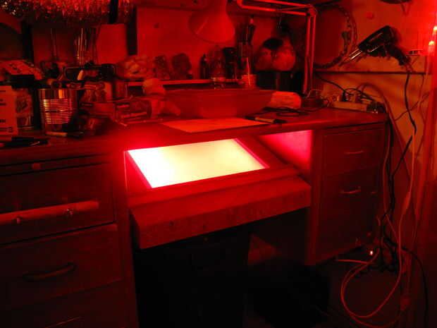 reciclar, que es el tema de estos instructableTengo una lámpara con una lupa y un fantástico "FUJI Cámara Digital" que he tenido en almacenamiento de información que no he usado en más de un año.Paso 1: necesito una mesa de luz para crear imágen