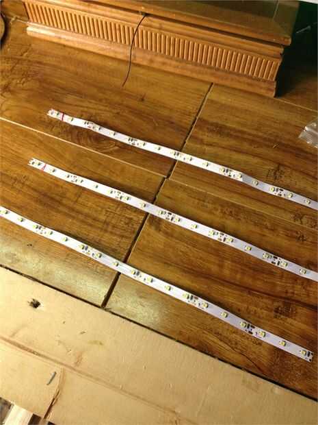 En lugar de ejecutar mi propia, solo usé tres tiras de LEDs. Dos corrieron vertical y uno corrió diagonalmente. Esto proporciona suficiente luz a todas las áreas bajo el vidrio sin tener que poner más LEDs por debajo.