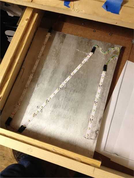 Realmente puse seis tiras hacia abajo para ver sobre el nivel de luz, pero encontrado que tengo igual cantidad de luz y el nivel apropiado de la luz con el N en forma de arreglo de LEDs, así que lo dejé en aquel.