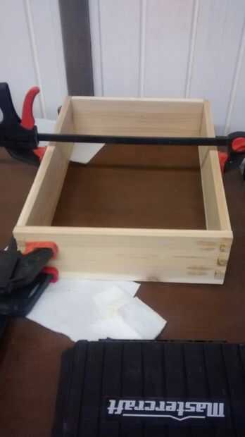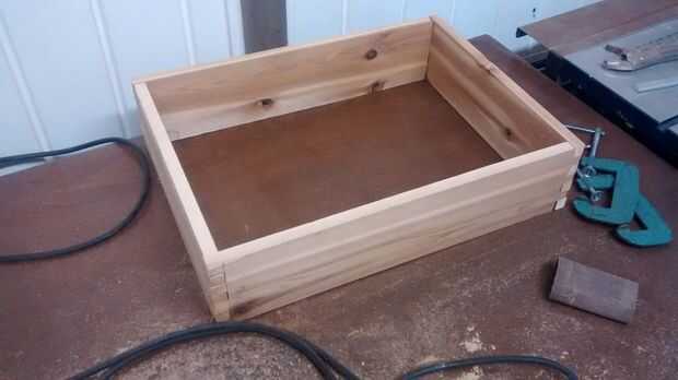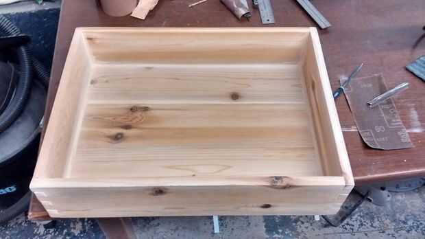 También, hice los lados un poco más cortos por lo que tengo que ajustar mi base para encajar en él. Usted no puede hacer la base más ancha una vez cortadas. Una vez colocado, clavó en la base toda alrededor usando cola y clavos de acabado pequeños.