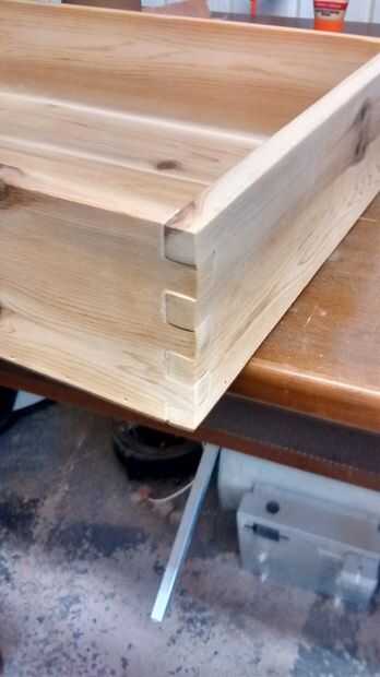 La carpintería para esto fue simple, pero complicado. Pino es muy suave. Casi demasiado suave. Mis habilidades hombre de las cavernas con los cinceles de madera trituran a la madera, así que decidí pegar a herramientas eléctricas. Utilicé el viejo truco de perforar toda la broca que quería quitar, entonces talló hacia fuera un cuadrado adecuado con una sierra de calar, desde el centro.