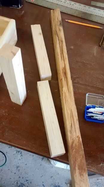 Empecé con un viejo pedazo de madera descartada. Como se puede ver del pic era bastante resistido, pero dado su tamaño el corazón de él era muy bonito y conservado. Cortar las piezas al lado podrido son todos de la misma tabla sola.