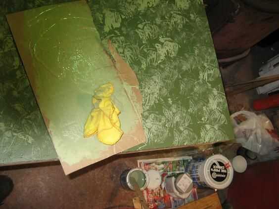 Mezclado poco de pintura verde y alguna cartilla, luego secó las paredes con un trapo empapado en pintura hasta que tuve que pasar mi brazo de hielo.