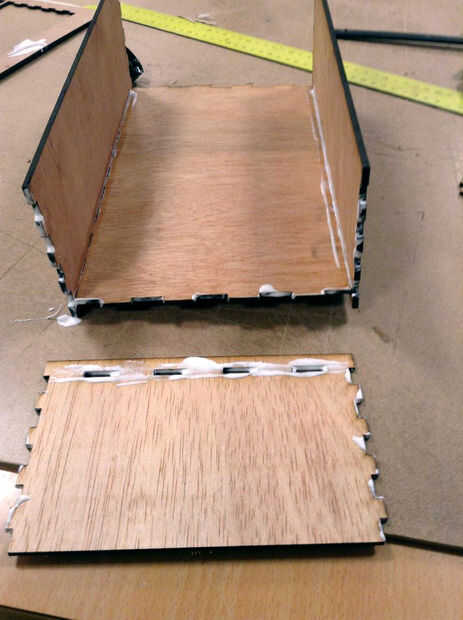 Con el lasercutter, corte las partes del archivo PDF o Illustrator. Luego pegue juntos.