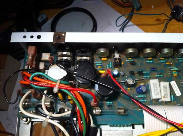 Para mejorar el sonido un poco y evitar otra explosión del condensador, los dos condensadores de 3300uf 35v fueron sustituidas por 2 Nichicon Golf plateado 6600uf 35v y su forma ahora!