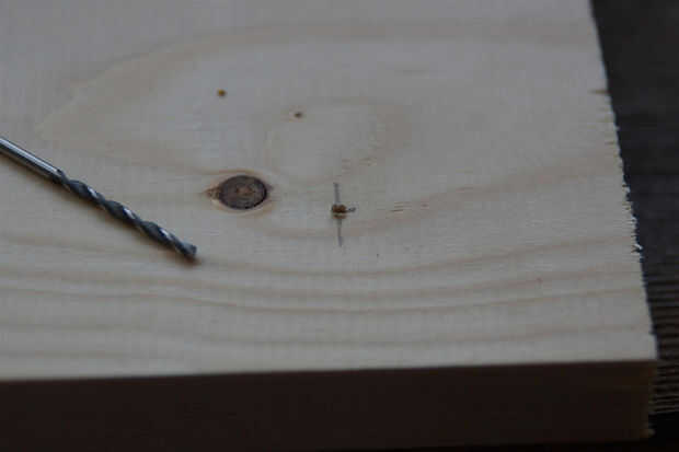 Primero hice un orificio piloto así que sabía el punto exacto para el agujero pequeño y grande para ambos lados.