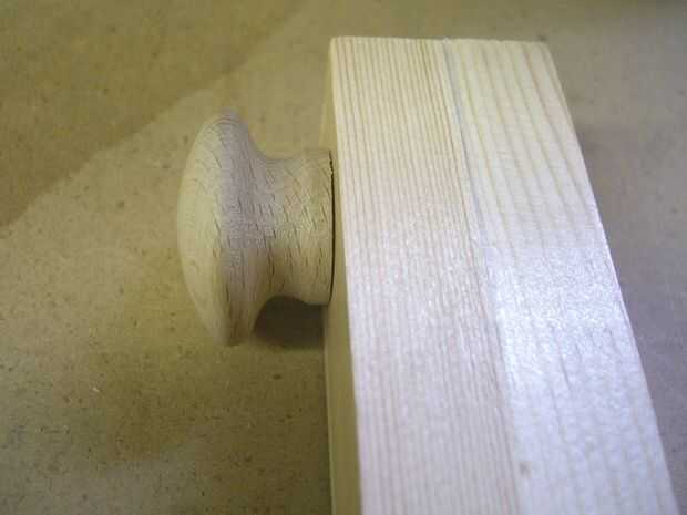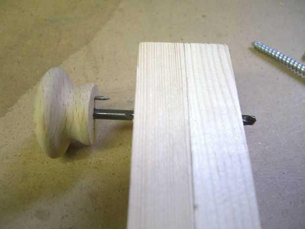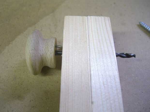 ESTA PARTE ES CRUCIAL! Se debe tener cuidado empujar la perilla en el frente del cajón para que se asiente rotundamente contra el frente del cajón. Recuerde, también están haciendo un agujero en el frente del cajón con el ancla.