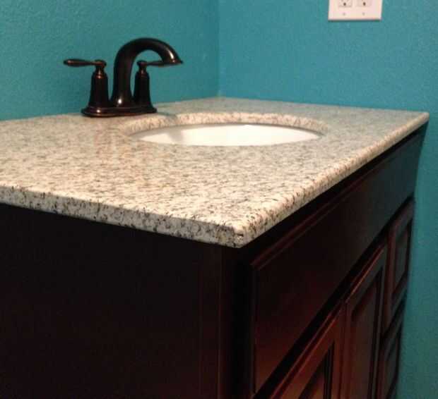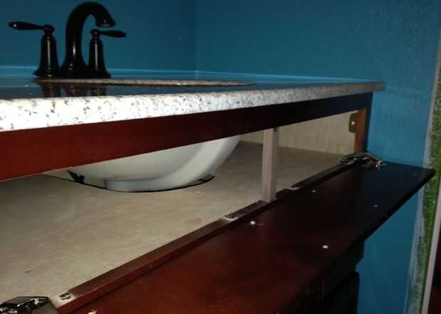 Aquí está el producto terminado. Aún no puede decir se ha modificado pero funciona de maravilla. El pelo secador hace toma todo el lado derecho, pero ahora nuestra encimera es clara, y la otra mitad sigue estando disponible para más espacio de almacenamiento.