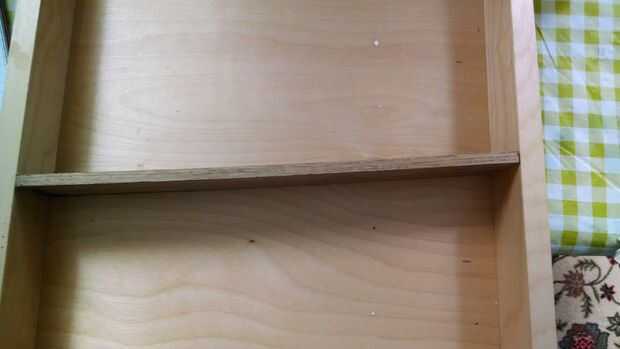 Mida el ancho del interior del cajón y marque en la madera. Luego, cortar la madera. Hice tres estantes para mi estante de esmalte de uñas. Por último, seco montar el para ver si cabe.