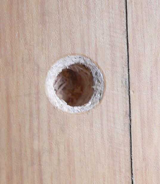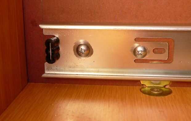 Ahora es el momento para fijar el cajón a la mesa. medida donde la varilla del metal del sistema de fijación será salir y marcar del lado de la mesa. Añadir cinta o algún tipo de marcador sobre la broca del taladro para no perforar a través del lado. Perfore un pequeño agujero primero, luego un agujero del mismo tamaño que la barra y con una broca de avellanar, ensanchar el extremo para que la barra se deslice en si existen pequeñas alteraciones en el movimiento. Coloque el cajón debajo de la mesa y fíjelo a la parte superior con los tornillos 10 X 19 G. Una vez más primero marcado y había hecho los agujeros donde irían los tornillos. Al montar el cajón, puede moverse. Por lo tanto solía un gobernante como un buffer para mantener fijo.