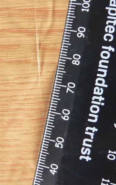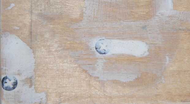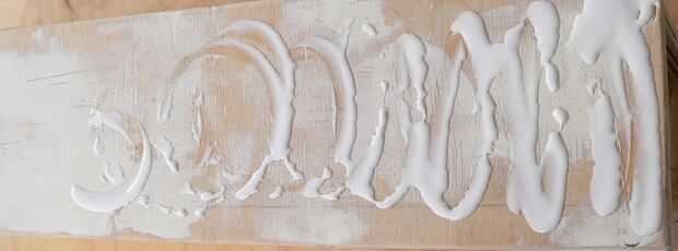 Uso de la masilla de madera, cubrir todas las áreas donde hay defectos o agujeros como alrededor de los tornillos o en los trozos de madera Únete. Ahora corte el vinilo madera o papel para que cubra todas las áreas necesarias. Agregue pegamento para madera y manchar alrededor a todas las áreas que serán visibles y Coloque lentamente el papel para que se fija uniformemente. Puede utilizar un paño y la tarjeta de crédito o la regla para expulsar lentamente burbujas de aire que aparecen.
