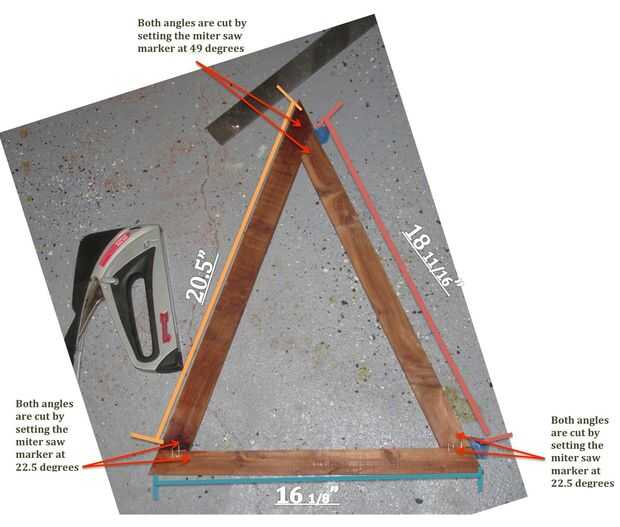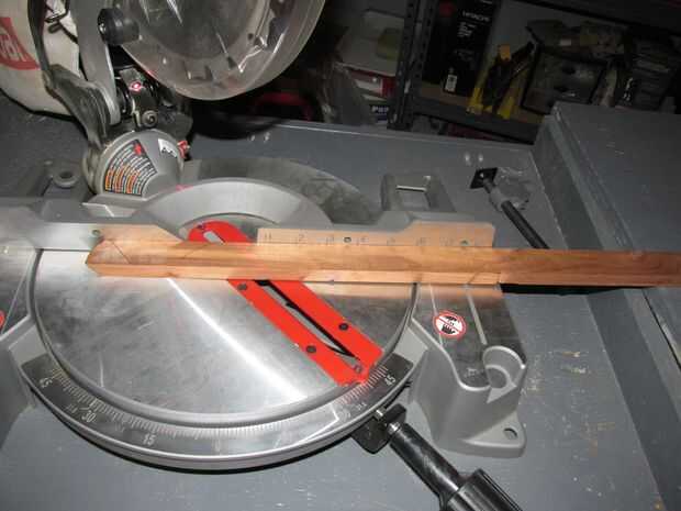 Hay dos ángulos, se utiliza para hacer estos recortes. Para la base del triángulo ángulos son 67,5 grados. Para lograr este ángulo del inglete sierra debe establecerse a 22,5 grados.