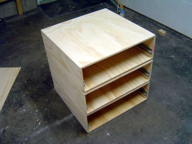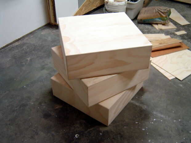 Montar los casos con madera clavos pegamento y brad, como se muestra. Dejar que seque durante la noche, luego arena, llenar cualquier imperfecciones con masilla para madera y arena otra vez.