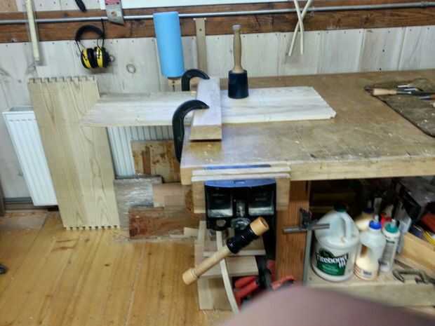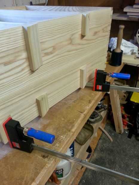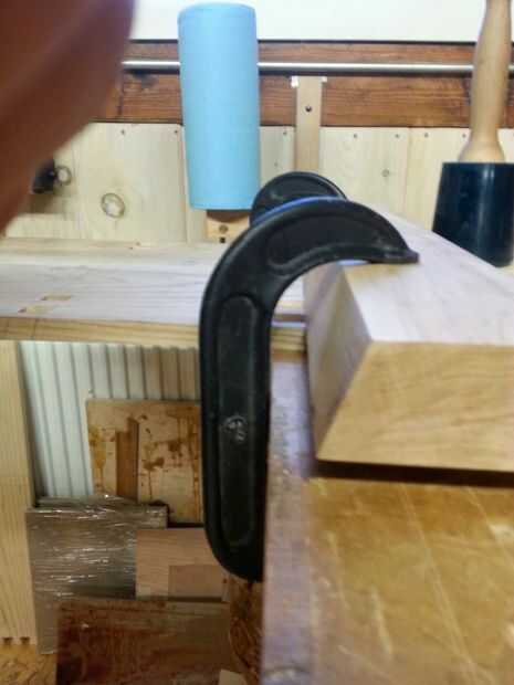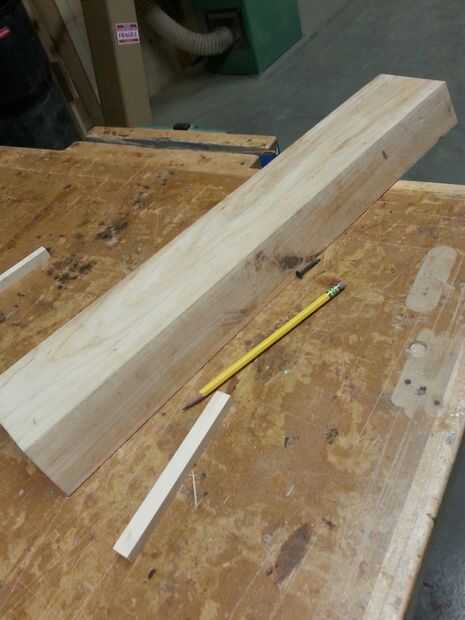 primero tienes que tener un pedazo de material de desecho que es cuadrada. Llevarlo a la Sierra de mesa con la hoja en ángulo con el mismo ángulo como su proyecto. Utilicé el más grande de dos shootingboards (usado para dirigir mis cinceles cuando las juntas de compras) para establecer el ángulo seguro. Se cortará el material que está estafando en varios pedazos. Trate de dar sobre y 1/8 de y pulgadas pero no más de un 1/4" si no que se pone en el camino. Cortar las piezas individuales para caber el tamaño de la abrazadera y asegúrese de que tener suficiente de ellos. En mi caso necesitaba 17.