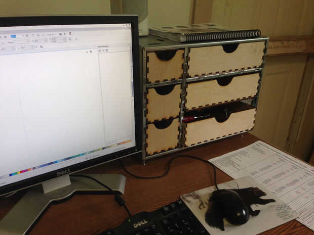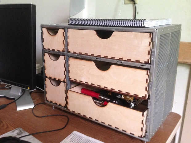 Con los cajones, repisas y pies ahora montado y en su lugar, fue muy satisfactorio despejar el escritorio y mesas y se llenan los cajones. Encontré que había un montón de espacio en los cajones de todos los elementos que regularmente se encuentran esparcido por el escritorio y mesa superior; papel de lija, pinzas, cintas métricas, cuchillos y pinzas etc. y aún más.