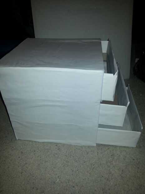 Había pegado a los cajones y más tarde había pegado. Después de los (cajones más apenas envuelto el frente, lados y parte inferior interior del cajón - foto 2) envuelto en papel blanco.