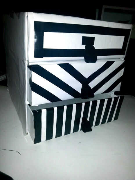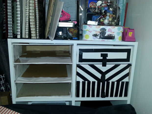 Más tarde cambié las manijas del cajón porque fue hecha de cinta aislante pero no era lo suficientemente fuerte como para el peso de los cajones con artículos en ellos.