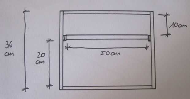 Ten en cuenta añadir el grosor de la madera (2cm), y obtienes la altura total de los tableros laterales. consejos (36cm) del lado tendrán 36 cm por 50 cm.