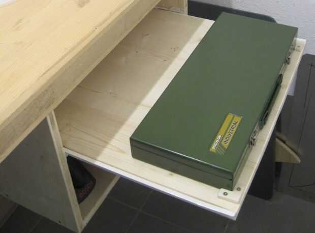 Para el toque final: he hecho poco "L" y "Yo" de en la parte posterior de mi caja de herramientas, para que no se mueva cuando lo saca o abrirlo.
