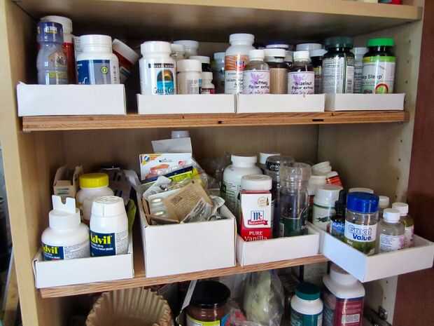 Pero tengo que decir que son una de las mejoras más prácticas alrededor aquí para organizar un estante cocina desordenados y construido fuera sobre todo materiales reciclados.