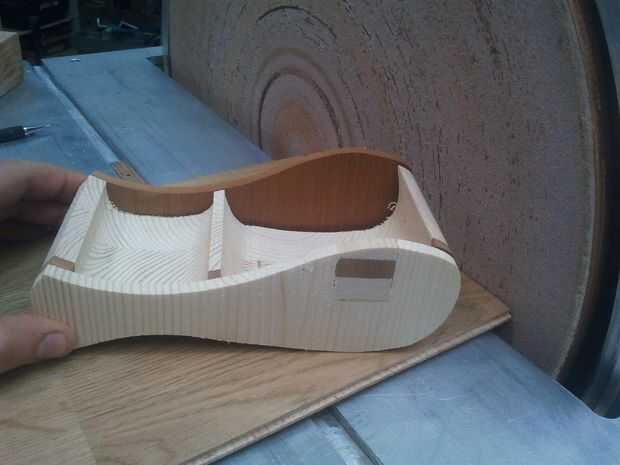 Una vez que han cortado a la mitad en la Sierra de cinta, pegar la parte delantera y volver atrás.