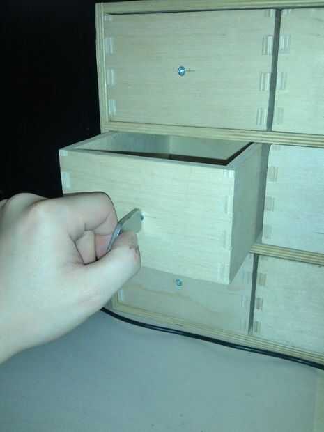 Disfrute de su nueva solución de almacenamiento seguras:). Un imán de disco duro le permite abrir los cajones.