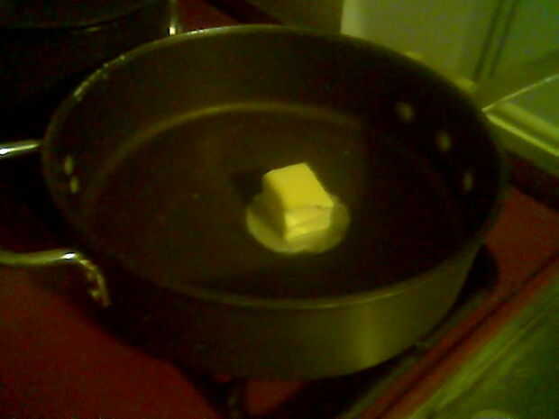Paso 1: Poner una media barra de mantequilla sin sal en una olla o sartén hasta que se derritan completamente hacia abajo. Esto evitará que el resto de los ingredientes de que se pegue al fondo y quema.Paso 2: Después de que la mantequilla se haya de