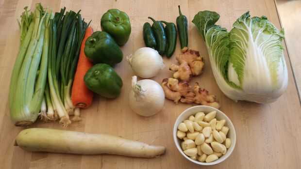 (Cebollas, pimientos y el apio son conocidos como la "Santísima Trinidad" de verduras en cocina de Cajun, que se utilizan muy con frecuencia juntos).