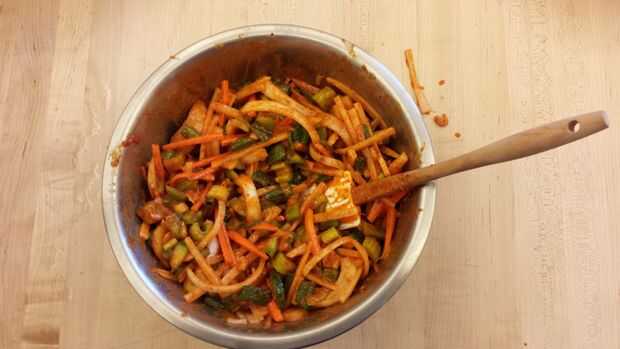 Empecé a hacer Kimchi un par de años. Desde entonces me gusta hacerlo para comer con todo.Su muy divertido porque se puede modificar sin embargo te gusta y resulta bastante grande! A veces añado un pimiento fantasma para hacer un lote picante.Este in