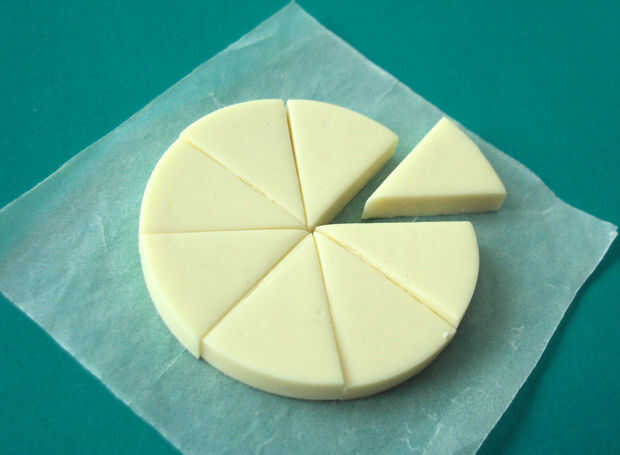 A continuación, corte las rebanadas de pastel. He hecho esta plantilla para cortar mi arcilla en rebanadas perfectas y ahorrar tiempo, por favor descargar el pdf desde el primer paso e imprimirlo. Hace que las láminas de corte mucho más fácil y le ayudará a conseguir rebanadas perfecto cada vez!