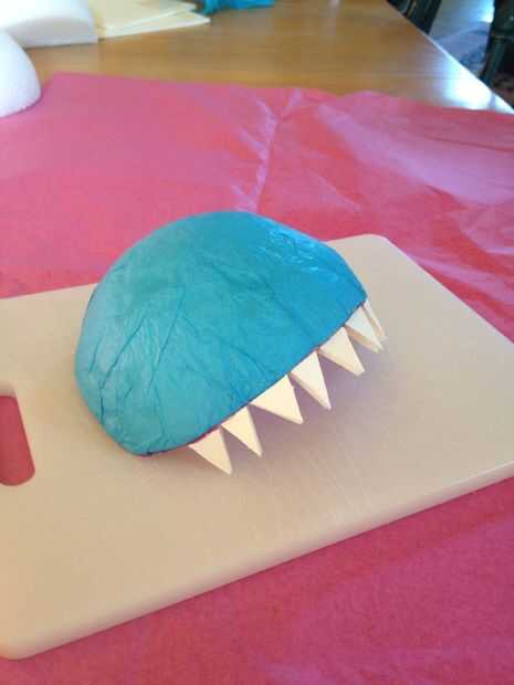 Corte el resto de los dientes más pequeños que los dientes posteriores y pegamento alrededor del borde de la proyección de la boca.