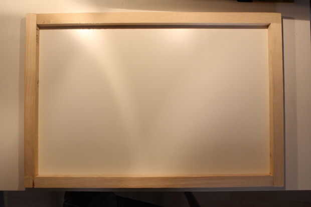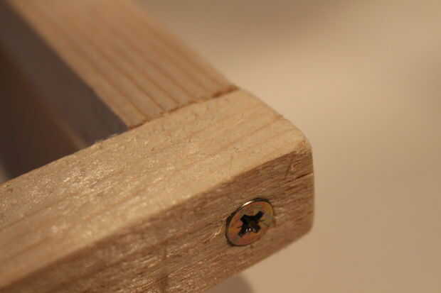 Cortar la madera según sus medidas. Originalmente coloqué los tornillos de tal manera que hubo sólo un tornillo en cada lado. Esto mejora la estabilidad como las piezas individuales no se tuerza. Sin embargo porque me olvidé de medir correctamente terminé con un pequeño fotograma diferente.
