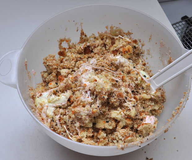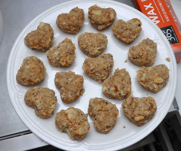 Fui con un método similar como el arroz Krispies trata. Empujó a la mezcla en el cortador de la galleta, pero luego hacia un poco para que sea un poco más redonda. Foto 7 muestra esto.