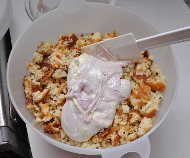 Mezcla de pastel y malvavisco derretido. Usted puede poner esto en la nevera para un poco, pero encontré que no era necesariamente útil.