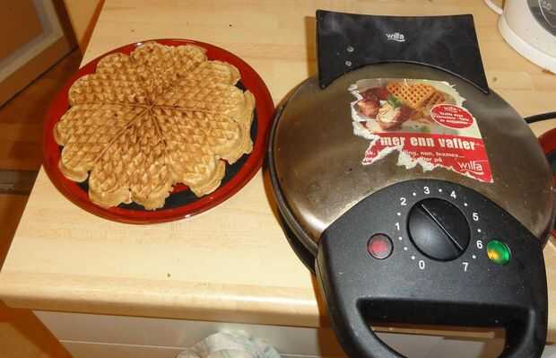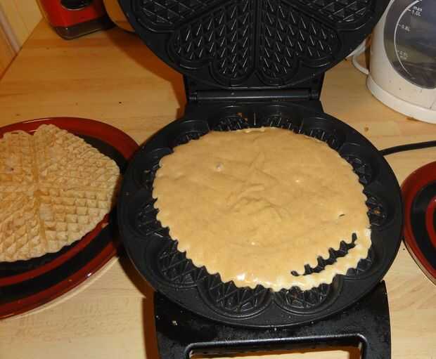 Agarra el barquillero y déjelo calentar. Una vez caliente, grasa mantequilla o margarina u otras cosas no stickifying (tengo un pincel de silicona para este propósito), entonces agregue algún bateador. Sólo llenar parcialmente el hierro, de lo contrario la masa se exuda de los lados, y eso es un desperdicio. Tarda aproximadamente un minuto para mina adecuadamente hornear una galleta cuando en la configuración de calor más alto. Me quedo con un tenedor para alzaprimar hacia fuera los barquillos terminados.