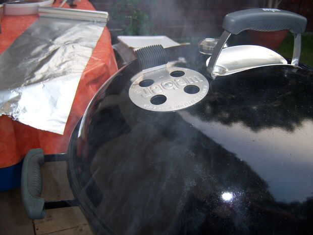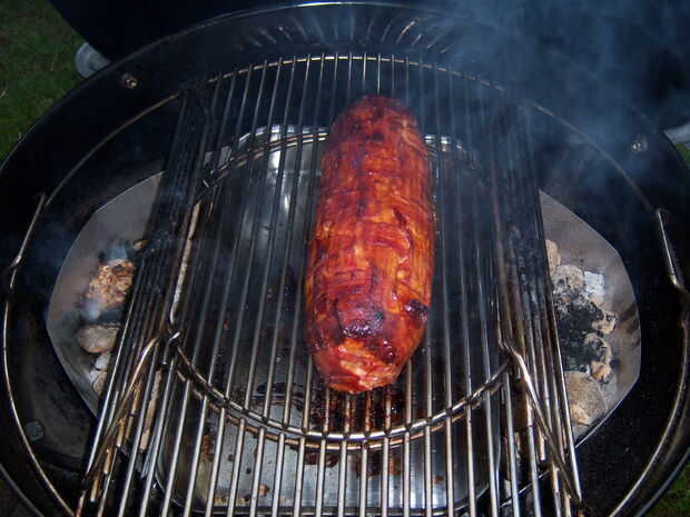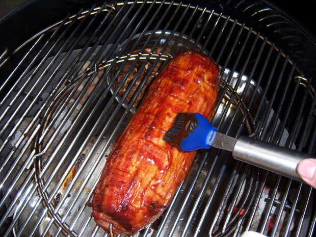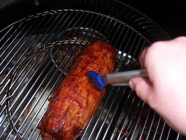 Después de media hora nuestro bebé obtiene esmaltado con BBQ salsa y se añaden las virutas de roble.