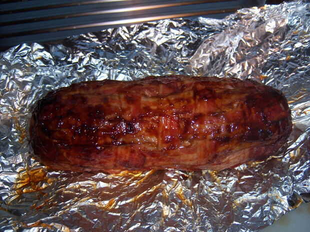 Cal. 88mm corazón Piercing Bacon Roll - relleno con cebollas y ciruelas, envuelto en una trenza de tocino (9 / 10 paso)